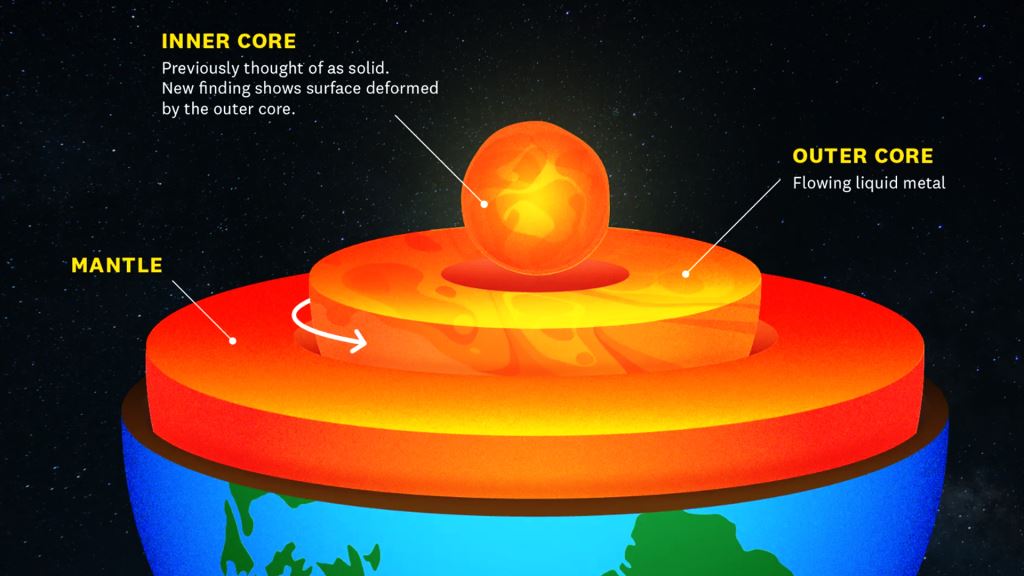 Although composed mainly of solid rock, the mantle does not remain rigid; under high temperature and pressure, its material flows slowly over long periods.