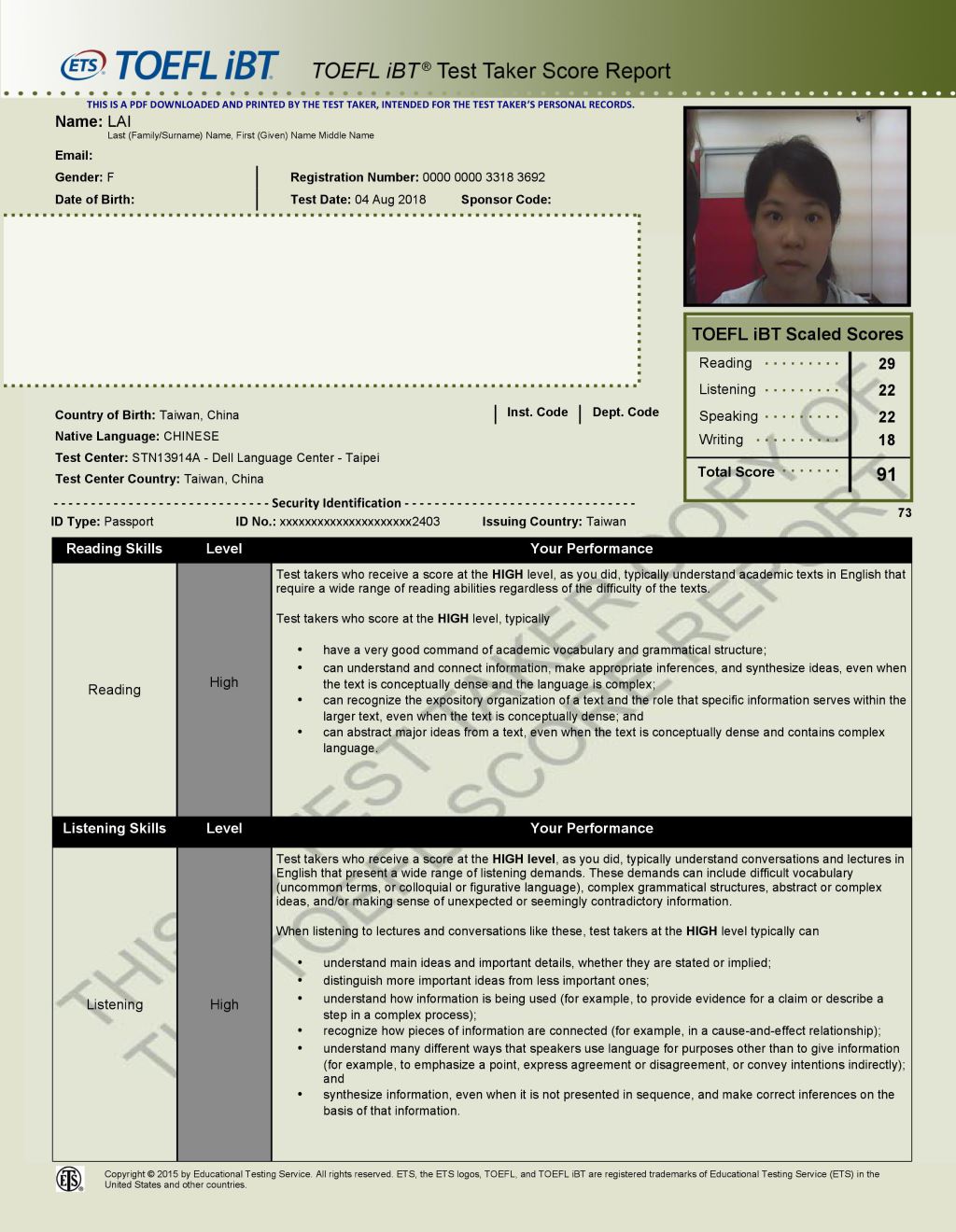 以上是我參加戴爾美語的心得,雖然二戰分數只有90分,但這個分數對於我未來申請國外的PHD Program有很大的幫助。也非常感謝戴爾美語的每一位老師,老師們在編制講義上真的很用心,並且也補充很多實用、更新的材料,不僅符合考試使用,也符合即將要去國外讀書的我也幫助許多!