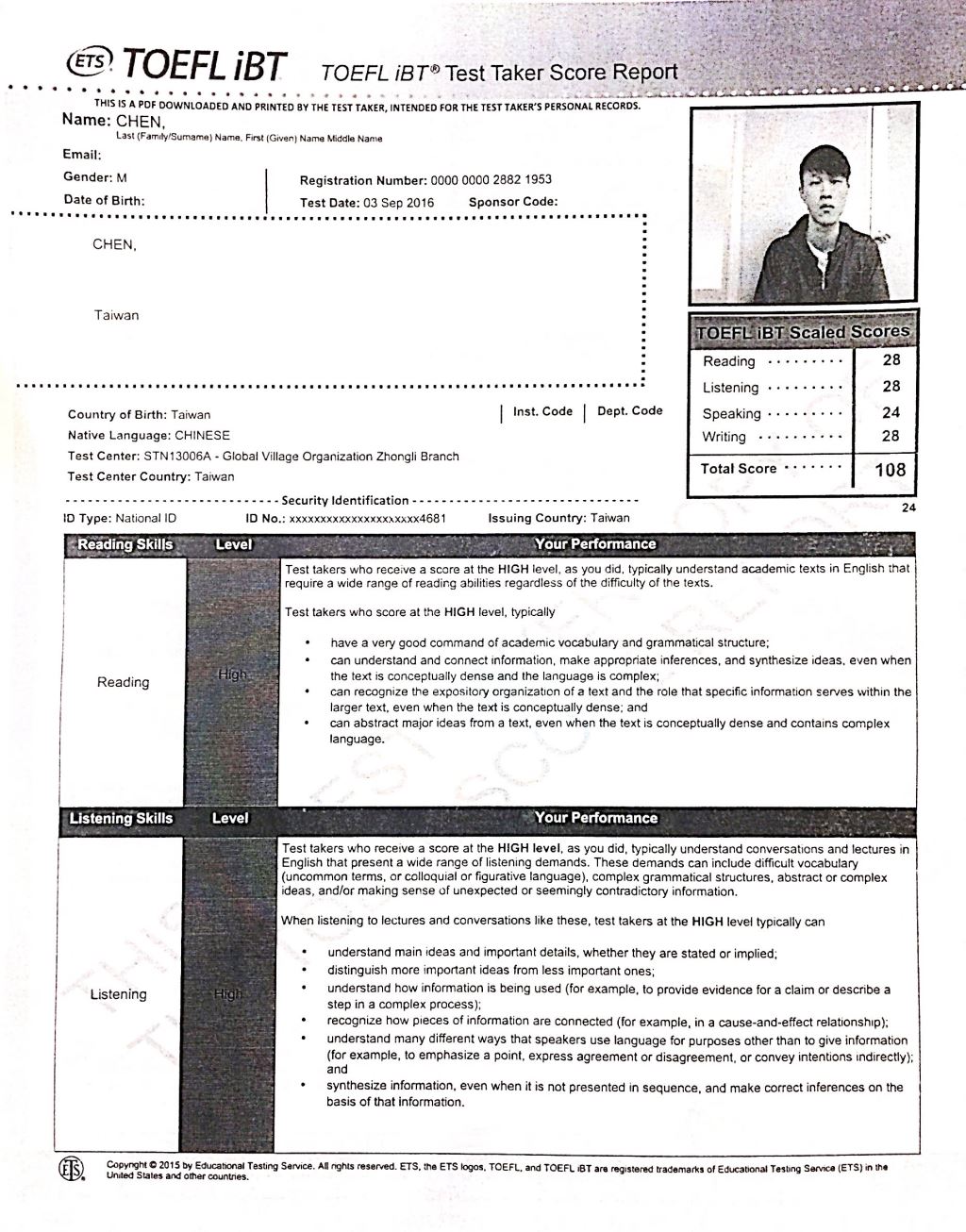 由於我對於英文寫作較有心得,所以我的準備方法非常簡單,就是單純看戴爾老師在寫作課提供的講義以及寫作模板。在真正考試時,有一個好用的模板是非常重要的!它能夠幫助你快速整理好你所讀到的重點內容,讓你能夠不用再額外花時間去想要怎麼把你的文章重點串聯流暢。除此之外,寫作的準備還有一個重點就是在表達同樣的意思時,要訓練自己能夠用不同的句型或單字來呈現的能力,這樣文章看起來才不會千篇一律,畢竟如果在同一篇文章中,相同的句法或單字一直呈現的話,很容易就造成閱讀者的疲憊感,以及反映出寫作者自身單字量不足的缺點,所以老師在上課時,會特別教導我們各種重要連接詞以及副詞的不同說法,讓我們的文章能夠多變不乏味。雖然我在寫作的準備方面相對前面幾科是較於簡單的,但是在把握度來說,我認為寫作是我最有自信的一科。因為在有老師提供的模板之下,我不怕寫作時會有浪費時間不知從何而起的窘境,這算是我能夠在寫作獲得高分的一大原因!