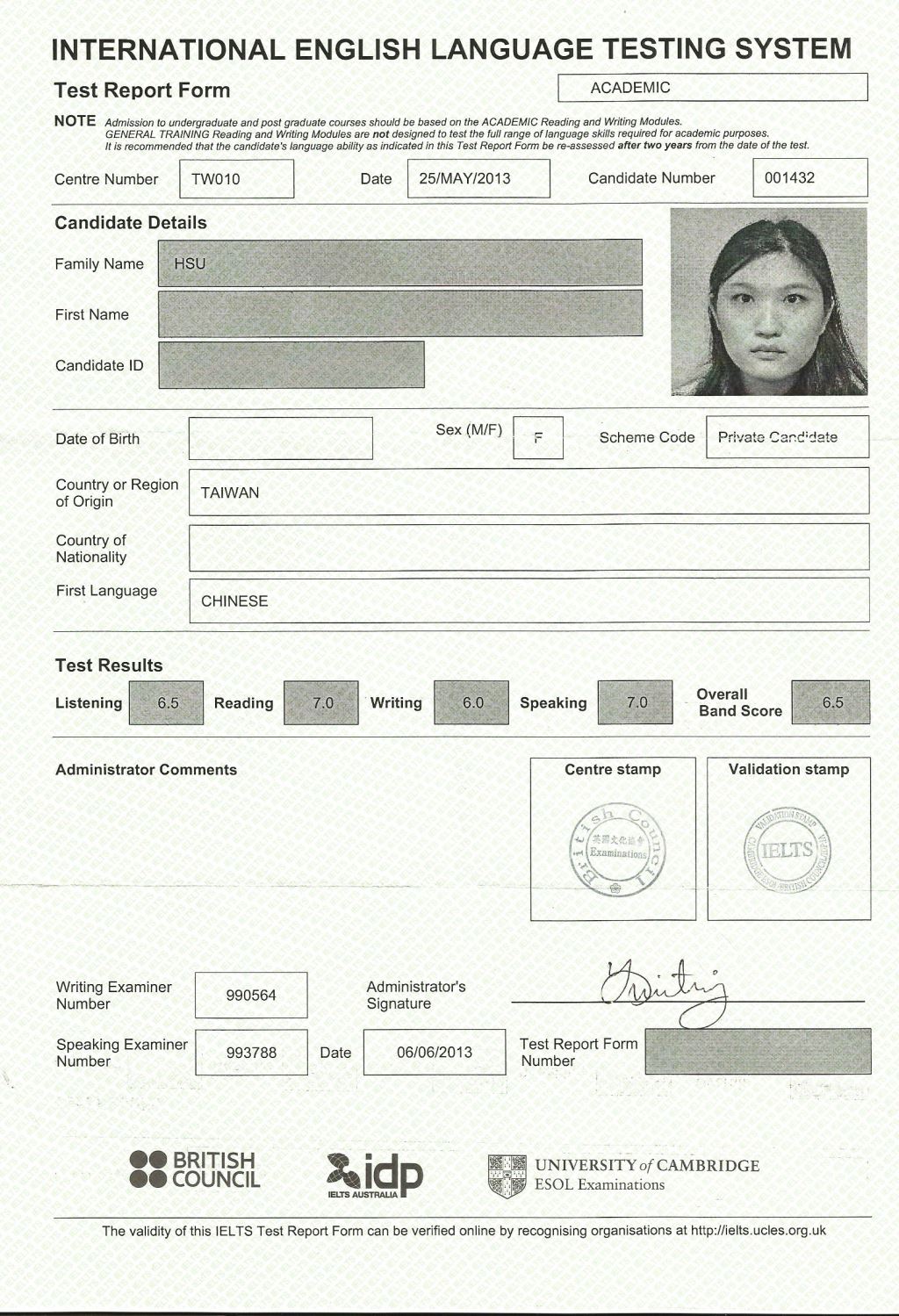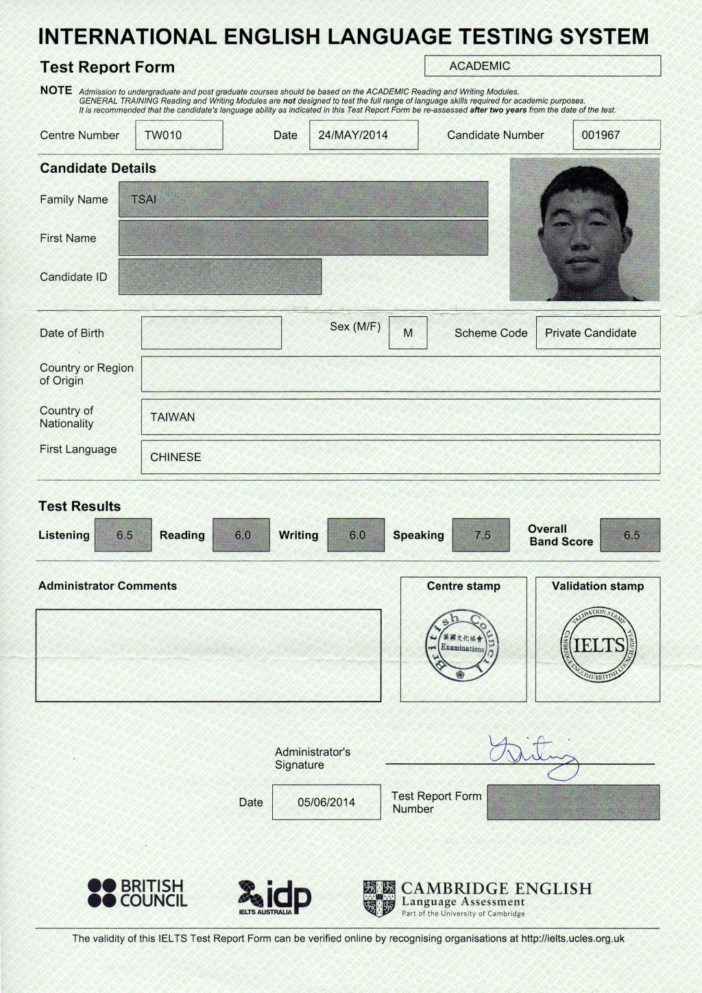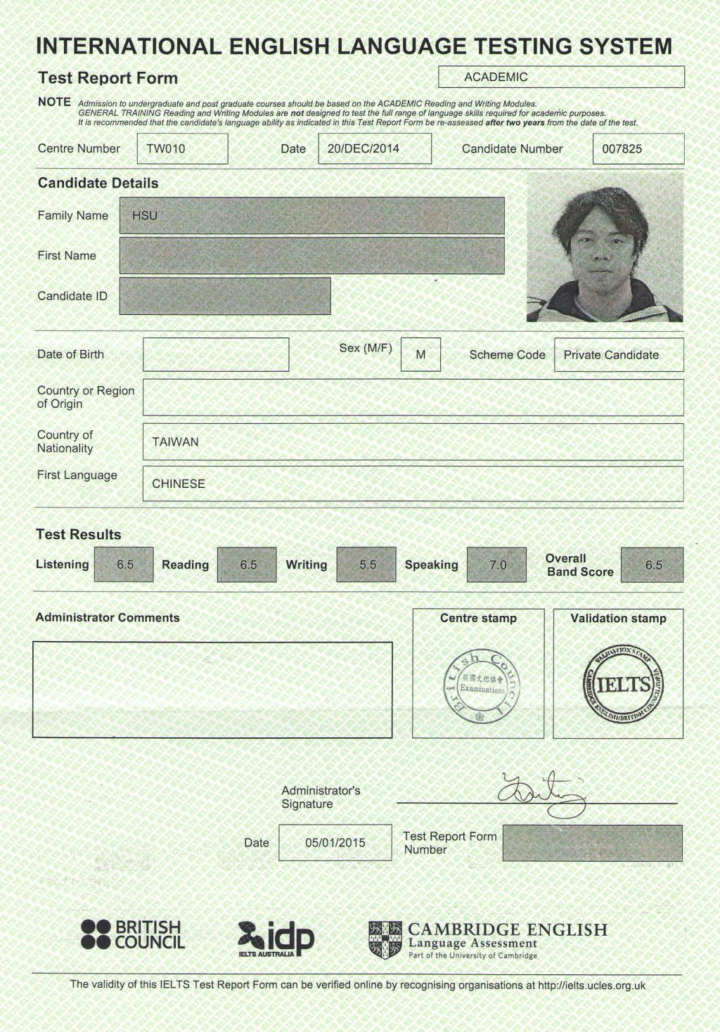 除了提供聽力的練習,在口說部分尤其給予我們非常大的幫助,藉由學生之間的互相練習以及跟老師的口說練習,一方面能熟悉測驗考官的語調及測驗的方向,另一方面則是能提升面對考官表達能力,讓自己不會太緊張,在考前的一個月,由Jennifer替我安排參加台北校的雅思模擬考,在模擬考時先行熟悉正式考試的場地,也完整的體驗過整個測驗的流程,雖然在模擬考時的成績並不理想,在104年4月18日的考試中,我達到了英國倫敦帝國理工學院所要求的雅思成績。