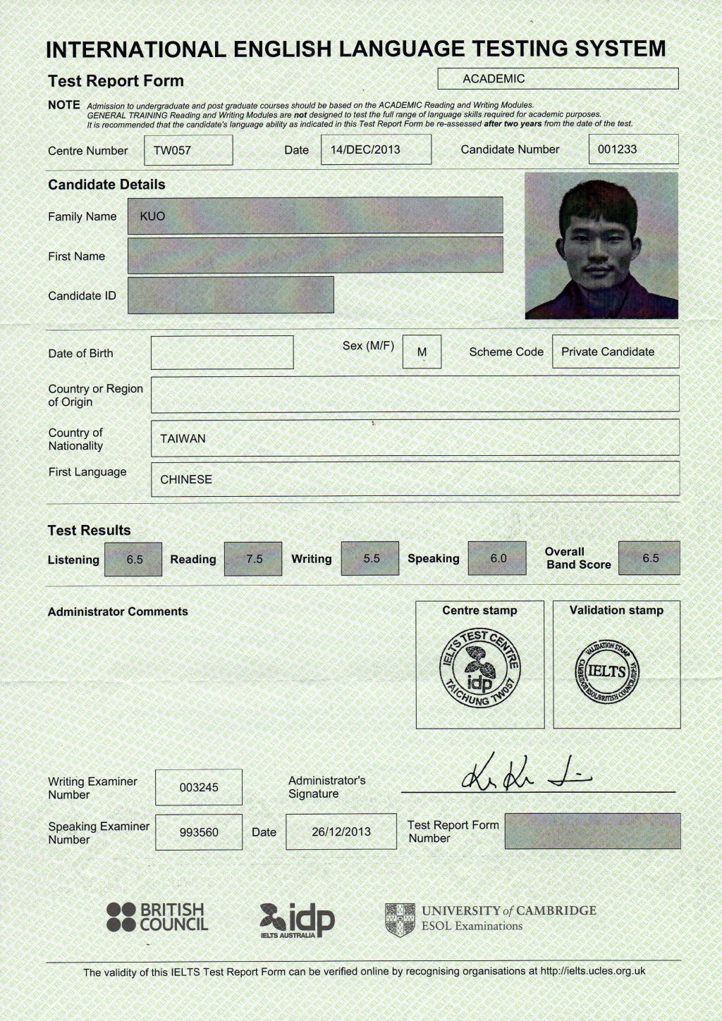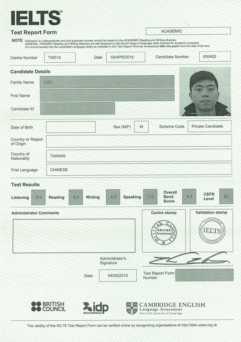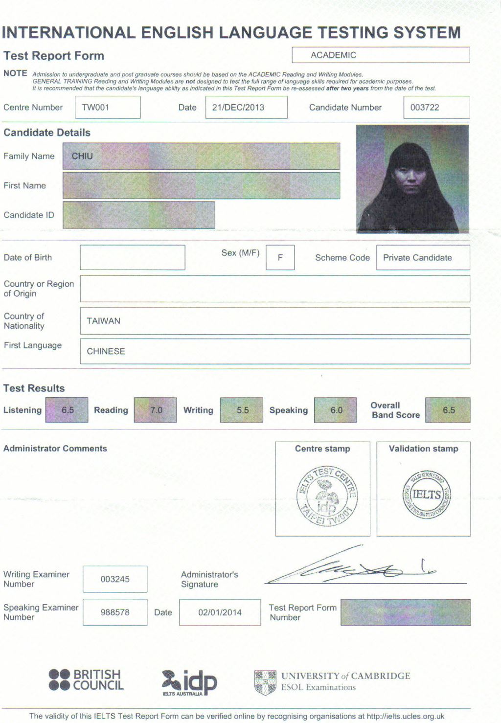 除了提供聽力的練習,在口說部分尤其給予我們非常大的幫助,藉由學生之間的互相練習以及跟老師的口說練習,一方面能熟悉測驗考官的語調及測驗的方向,另一方面則是能提升面對考官表達能力,讓自己不會太緊張,在考前的一個月,由Jennifer替我安排參加台北校的雅思模擬考,在模擬考時先行熟悉正式考試的場地,也完整的體驗過整個測驗的流程,雖然在模擬考時的成績並不理想,在104年4月18日的考試中,我達到了英國倫敦帝國理工學院所要求的雅思成績。