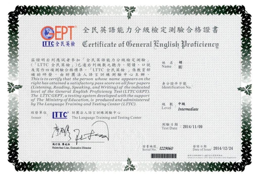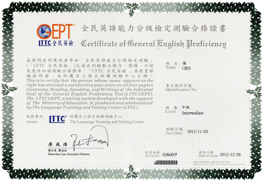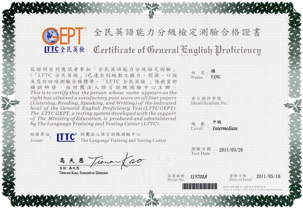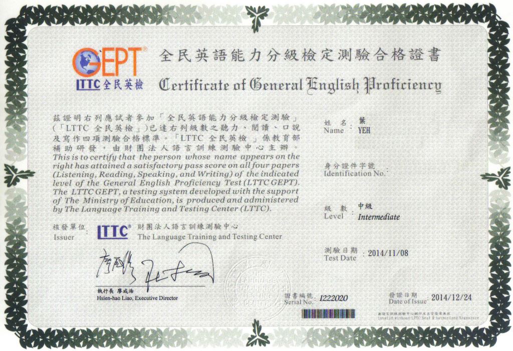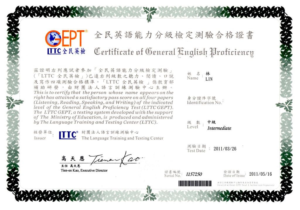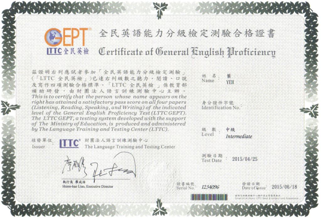 大家好,我是林育瑩,在這裡上中級英檢。近日已通過GEPT中級的考試。